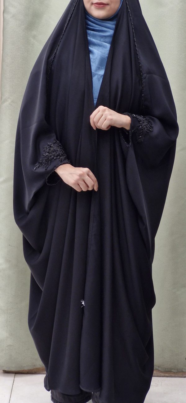 چادر جواهردوزی یاس با جواهردوزی روی سرآستین و سرشانهها، جنس نداچلیجی و سایز بندی ۱۵۰ تا ۱۷۰، انتخابی شیک و باکیفیت برای بانوان.