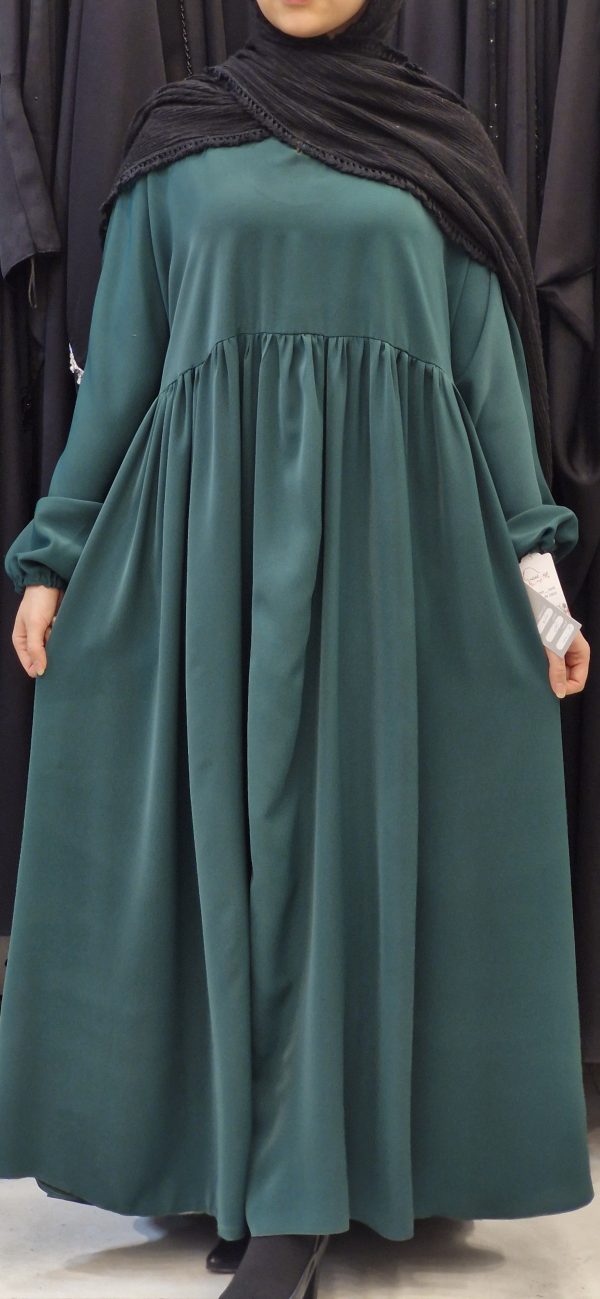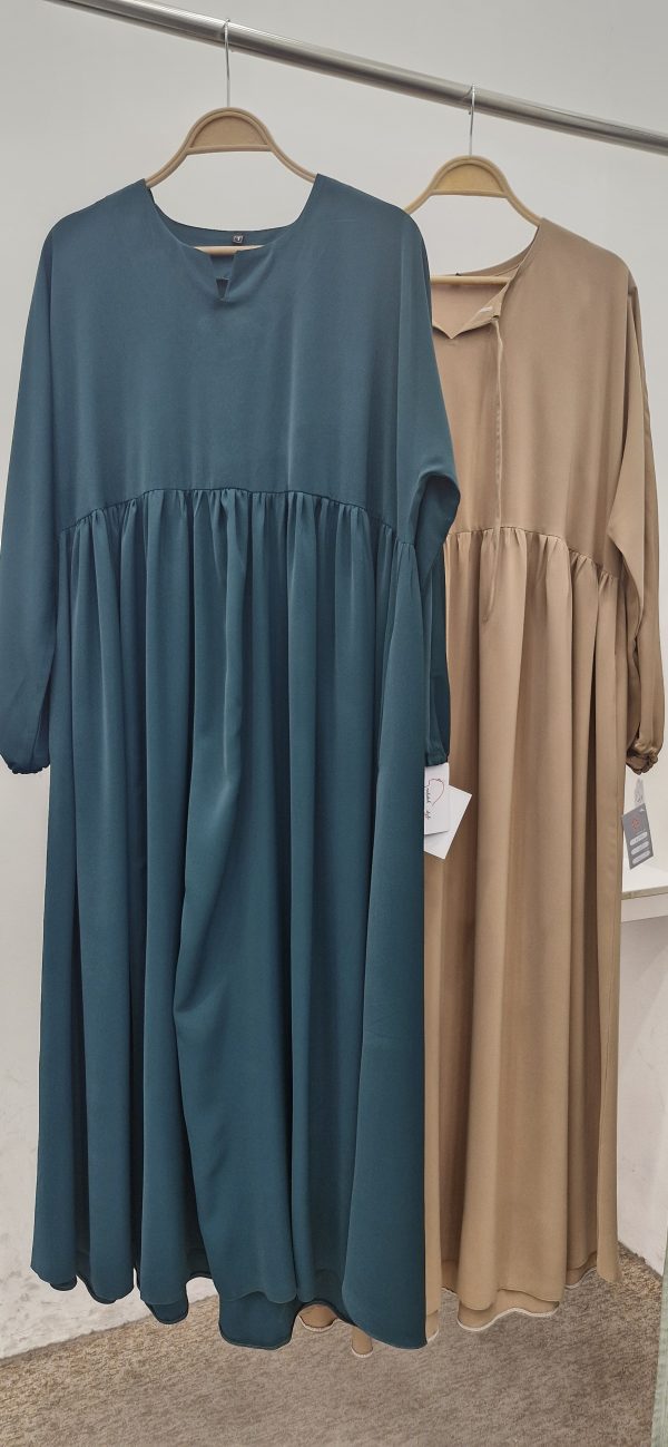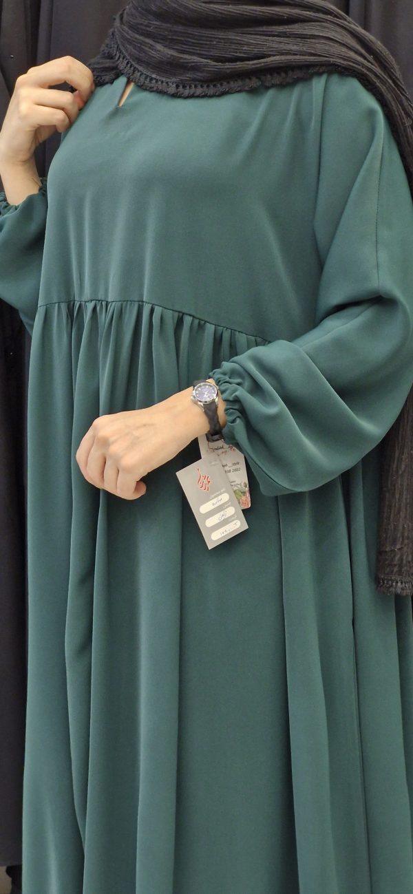 مانتوعربی کمر چیندار با جنس کرپ ژاکلین، قد ۱۴۰ سانتیمتر، در دو سایز و رنگهای سبز و کرم، انتخابی شیک و مناسب برای خانمهای لاغراندام.